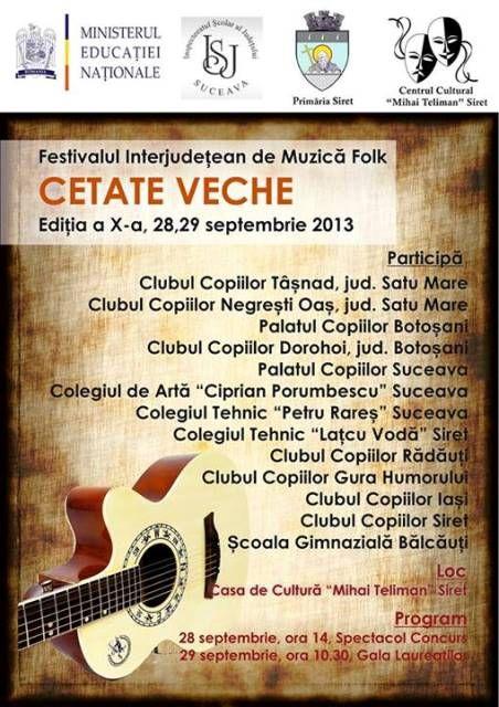 Festivalul de Muzică Folk „Cetatea veche” ce s-a desfășurat la Siret sâmbătă, 28 septembrie 2013 și duminică, 29 septembrie 2013, a adunat la un loc zeci și zeci de glasuri minunate. Municipiul Dorohoi a fost și el reprezentat în acest festival, astfel că două premii I și un premiu II au revenit copiilor dorohoieni coordonați de prof. Liviu Ciulei.