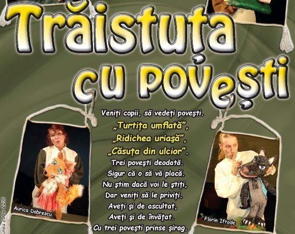 Duminică, 17 noiembrie 2013, de la orele 11 şi 12,30 vă invităm la Teatrul pentru Copii şi Tineret „Vasilache” să vizionaţi „Trăistuţa cu poveşti”, un spectacol după poveşti populare.
