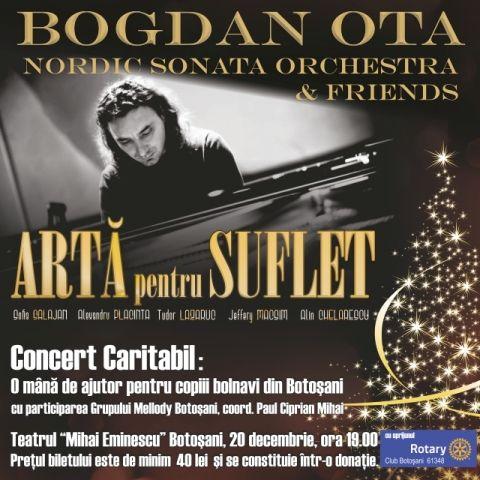 Pe data de 20 decembrie, începând cu ora 19:00, Bogdan Ota, acompaniat de Nordic Sonata Orchestra și prietenii săi va susține spectacolul caritabil „Artă pentru suflet” în sala Teatrului „Mihai Eminescu" din Botoșani.