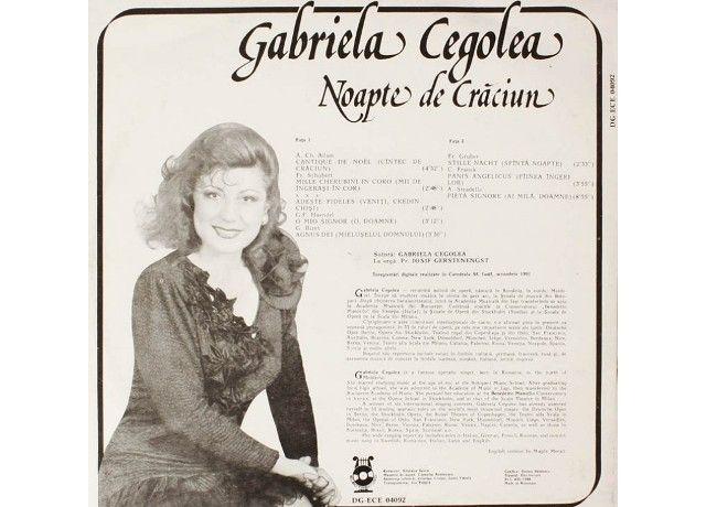 Înzestrată cu un deosebit talent muzical, s-a înscris la Conservatorul „George Enescu” din Iaşi, continuat la Conservatorul „C.Porumbescu” din Bucureşti. A fost eleva renumitei soliste de aur a Operei Române, mezosoprana Venera Aurora Rogozea. Gabriela Cegolea nu se opreşte aici. Continuă studiile muzicale la Conservatorul „Bernadetto Marcelo” din Veneţia (Italia). La 25 iunie1971 renunţă la cetăţenia română.