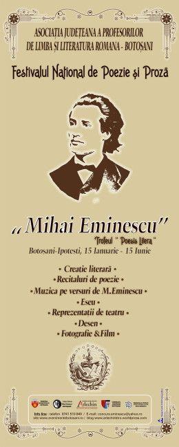 · Prezentarea şi lansarea Festivalului Naţional de Poezie şi Proză „Mihai Eminescu”, ediţia a III a - Poesis Litera, unde sunt invitate să participe personalităţi ale vieţii culturale şi artistice, iubitori de teatru, muzică, fotografie, pictură, istorie, literatură şi poezie: Badale Daniel, Manolache Ciprian, Cristina Chiriac, Muraru Crina, Damea Diana, Axinciuc Cristina, Epurianu Daniela, Săvescu Tamara, Hăilă Irina, Timingeriu Mihaela, Zamfirescu Violeta, Ringhilescu Mariana, Ticalo Mihaela, Artim Mihaela, Căruntu Gabriela, Stefănescu Mirela, Maria Oniciuc, Cristina Bălăucă, Ludvic Schibinschi, Mirela Soprovici, Ciprian Cazacu Hoffman, Marius Petrescu, Cornelus Drescanu.