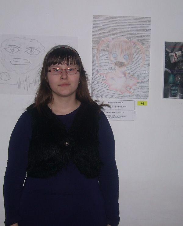 Desenul creat de Georgiana reprezintă o combinaţie de desen şi cazuri sociale luate din ziare. „În prima parte a afişului este cazul unor copii legaţi maltrataţi de părinţi, legându-i de pat, apoi am adăugat povestea unui tată care îşi bătea copii. Altfel spus, afişul creat de mine este inspirat din cazuri reale”. Georgiana îşi doreşte să îmbine desenul şi engleza cu muzica sau benzile desenate pe care le creează în clipele de răgaz. Toate acestea făcute doar de un copil de clasa a X-a, ceea ce demonstrează că Dorohoiul naşte copii de valoare. (DorohoiNews.ro, Mădălina O.)