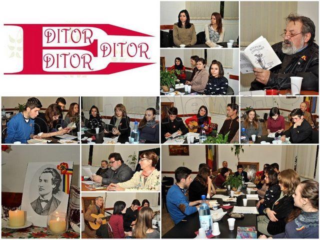 După programul celor mici, membrii cenaclului “Editor” au continuat activitatea cum numai ei au știut s-o facă. Programul lor a fost echilibrat de cântece pe versuri de Eminescu cât și poeziile lui recitate de membrii cenaclului: Tănase Vasile -“Ce-ți doresc eu ție, dulce Românie”, Andreea Ifrim –“Noaptea”, Buruiană Carmen –“Te duci”, Mirăuţi Alexandru -“Floarea albastră”, Aparaschivei Valeriu -“Singurătatea”, Mirăuţi Alexandru -“Fiind băiet, păduri cutreieram” Hrituleac Andrei și Țintă Alina –“Mortua Est”, Aparaschivei Valeriu –“Revedere”, Andreea Ifrim – “Speranța”, Purice Monica -“Și dacă ”, Buruiană Carmen -“Cand amintirile”.