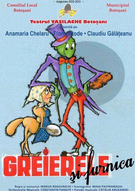 Duminică, 30 martie 2014, de la orele 11 şi 12,30 copii sunt invitaţi la Teatrul pentru Copii şi Tineret „Vasilache” să vizionaţi spectacolul „Greierele şi furnica”.