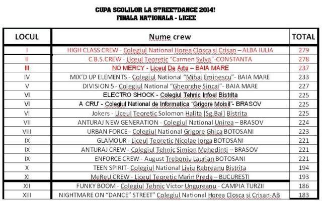 In Marea Finala, trupa Urban Force a ocupat pozitia a VIII-a, obtinand un punctaj mult mai bun decat la faza judeteana. Cu toate acestea, coregraful trupei, Tataru Cosmin a primit preimul pentru „Cel mai tare dansator la Cupa Scolilor/Liceelor la Street Dance 2014".