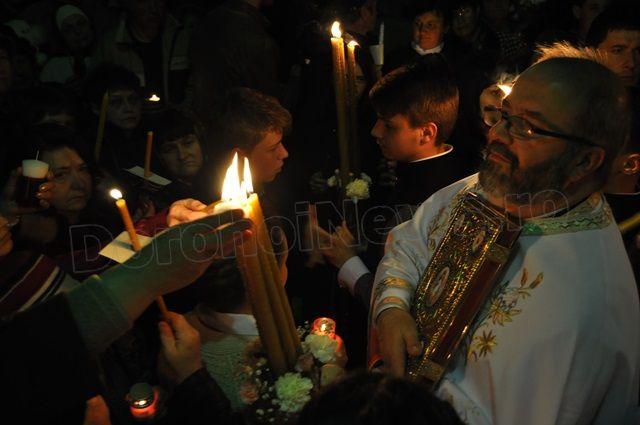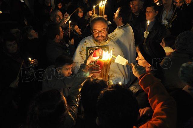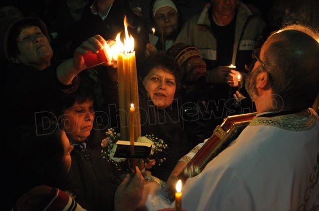 Străzile oraşului s-au transformat pentru scurt timp în adevărate râuri de lumină, credincioşii îndreptându-se cu lumânările aprinse spre cimitirul din municipiul Dorohoi sau spre propriile locuinţe. (Andrei B.)