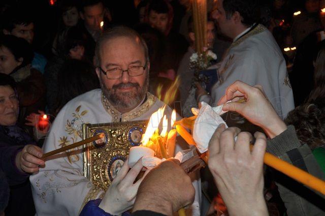 Înainte de miezul nopţii preoţii au împărţit Lumina Sfântă credincioşilor, iar în curțile bisericilor au răsunat cuvintele mult aşteptate, „Hristos a Înviat!”, urmate de răspunsul la unison al credincioşilor, „Adevărat a Înviat!”.