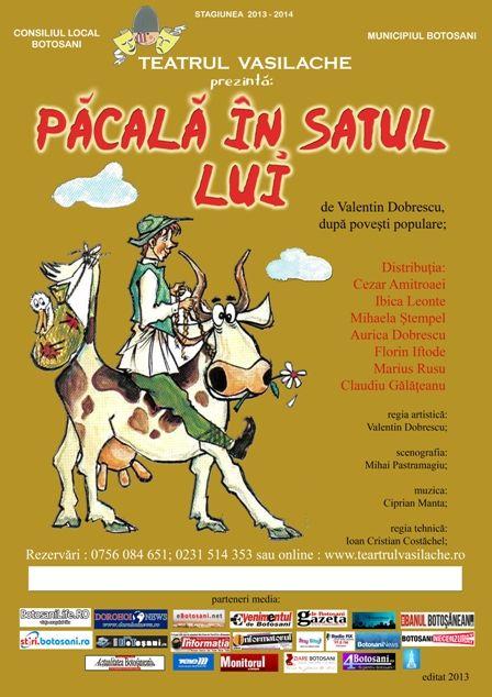 Teatrul pentru Copii şi Tineret „Vasilache” vă invită duminică , 8 iunie 2014, de la orele 11,00 şi 12.30, să vizionaţi spectacolul „Păcală în satul lui”, în regia lui Valentin Dobrescu.