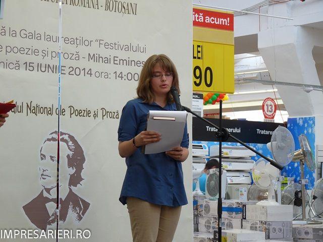 A treia ediţie a Festivalului Naţional de Poezie şi Proză Mihai Eminescu s-a încheiat, la data de 15 iunie, a. c., în incinta Carrefour Botoşani. Conceput de Asociaţia Judeţeana a Profesorilor de Limba şi Literatura Română şi derulat în parteneriat cu Memorialul Ipoteşti, Colegiul Naţional M. Eminescu, Inspectoratul Şcolar Judeţean şi Societatea Culturala ARLECHIN, proiectul a debutat la 15 ianuarie 2014 cu manifestări legate de naşterea marelui poet în Sala Multimedia de la Colegiului National Mihai Eminescu Botosani.