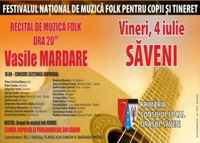 Vineri, 4 iulie, festivalul debutează la Săveni, cu concursul naţional de muzică folk la Secțiunea Individual ( Cristina Bianca Dima (Iasi), Petra Cozma (Dorohoi), Sebastian Ionel (Dorohoi), Marius Surdu (Botoșani), Anya-Alexa Bunduc (Râmnicul Sărat), Ștefan Iacob (Botoșani), Alexandra Liliana Bîrgovanu (Botoșani), Raluca-Alexandra Pop (Cluj-Napoca), Sebastian Antonio Almășan (Cluj-Napoca), Daria Denisa Airizer (Cluj-Napoca), Bogdan Mosutiu (Cluj-Napoca), Eduard Ionuț Macovei (Râmnicul Sărat), Sabin Gabriel Barboi (Siret), Liviu Damoc (București), Elisa Balau (Botoșani), Cristian Mihai (București), Iuliana Popa (Botoșani), Delia Porumb (Valea Râmnicului, Buzău), Andrei Ștefan Cîșlariu (Dorohoi), Andrei Aiminicesei (Botoșani), Alexeia Ioana Nedelcu (Râmnicul Sărat),  iar recitalul serii este asigurat de marele folkist Vasile Mardare.