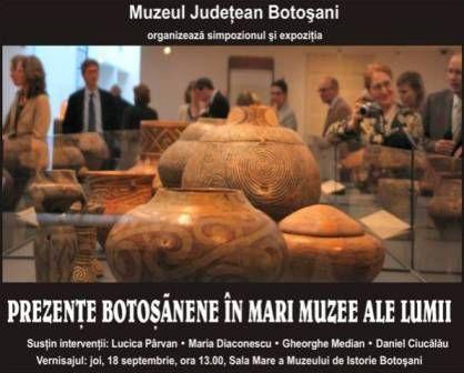 Muzeul Judetean Botosani organizeaza joi, 18 septembrie 2014, ora 13.00, simpozionul si vernisajul expozitiei „Prezente botosanene in mari muzee ale lumii”.