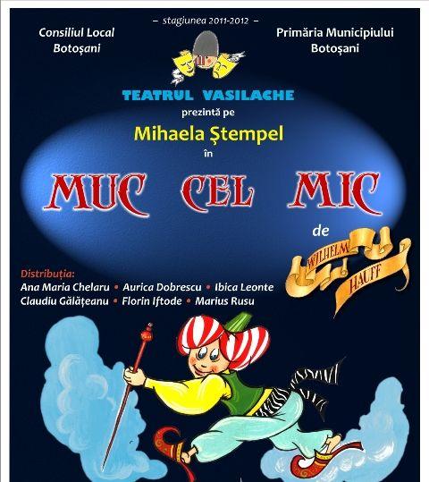 „Muc cel mic” spectacol la Teatrul „Vasilache” duminică, 28 septembrie 2014, de la orele 11:00 şi 12:30 Teatrul pentru Copii şi Tineret „Vasilache” vă invită la spectacolul „Muc cel mic” - adaptare scenică după Wilhelm Hauf, de Marius Rogojinschi