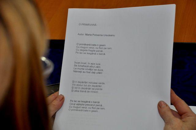 Ramona Ion, a dat glas poeziilor sale : „Plouă în gol”, „Unde ești tu, copilărie” și „Verde până mâine” , poezii sincere care te lasă purtat pe aripi de vis. Doamna Valuța Murariu, director al Casei Municipale de Cultură Dorohoi, gazdă caldă la ședințele Cenaclului „Editor”, a citit cu emoție poeziile „Dăruire”, „O primăvară”, „O îmbrățișare și un sărut”, „Nu mai e timp”, „Gol”, „Constatare”, „Și când cântă marea”, creații ale fiicei sale Marta Polixenia Ursuleanu.