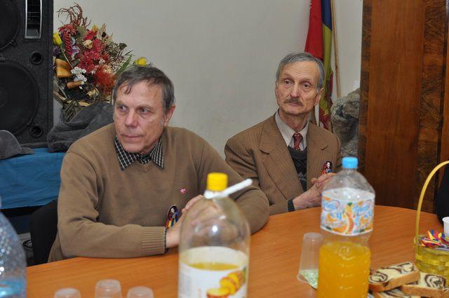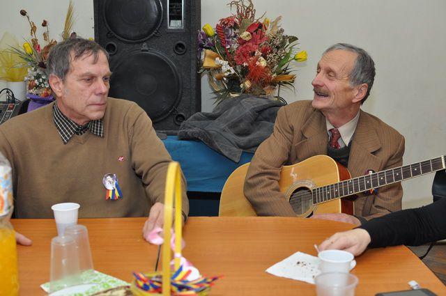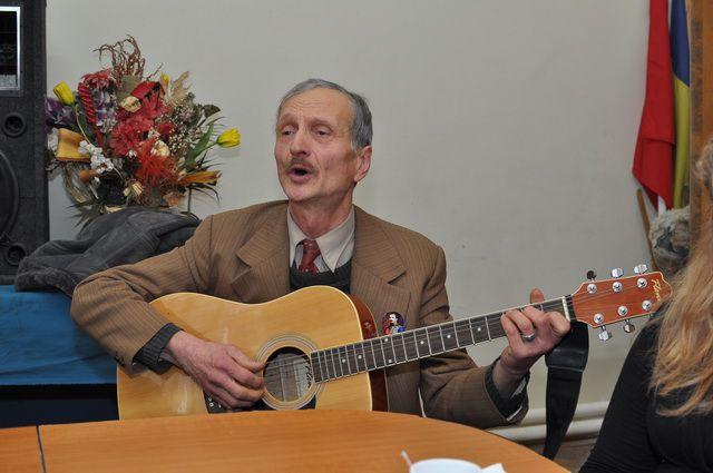 Apoi dl. prof. Vasile Tănase, pe acorduri de chitară, a încântat pe toţi cei prezenţi interpretând piesele „Să nu dezvelim statuia lui Cuza”, „Cuvântul lui Moş Ion Roată către Divan”, „Ţara lui Leru-i Ler” cu pasiunea şi dedicarea cu care cei prezenţi erau familiarizaţi, între timp dând citire şi câte unei epigrame.