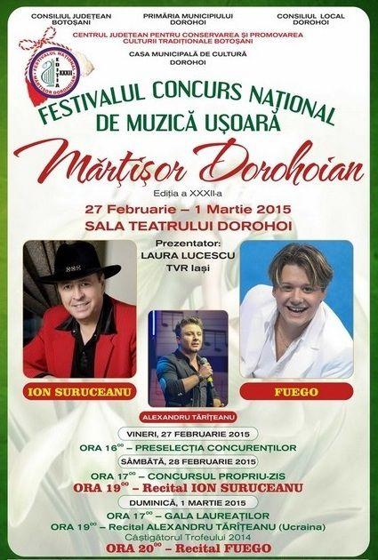 Centrul Județean pentru Conservarea și Promovarea Culturii Tradiționale Botoșani, cu sprijinul Consiliului Județean Botoșani, organizează în parteneriat cu Primăria Dorohoi, Consiliul Local Dorohoi, Casa Municipală de Cultură Dorohoi, Festivalul concurs național de muzică ușoară „Mărțișor Dorohoian”.