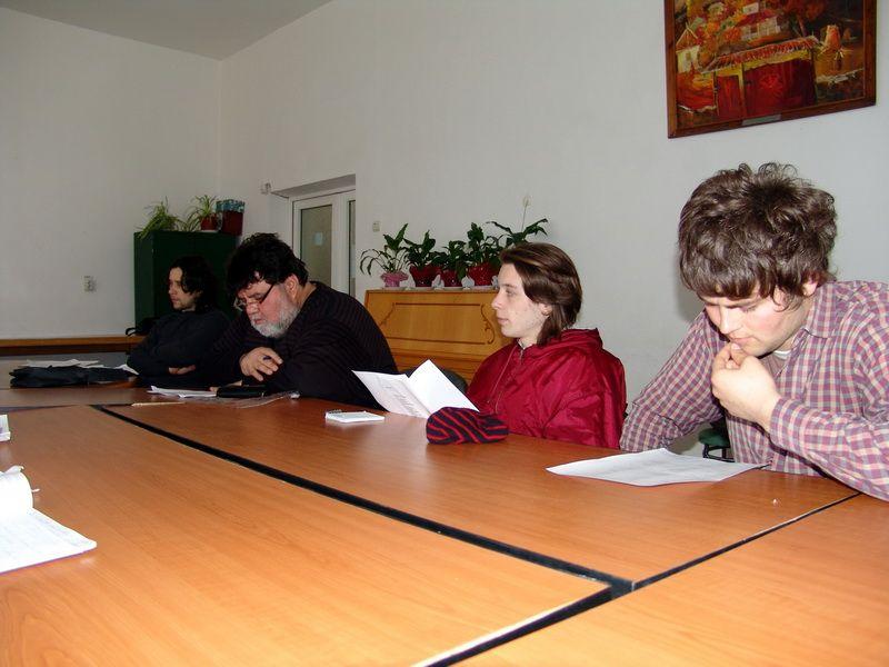 Cei 8 creatori prezenti la dezbateri s-au contrazis in mod amical si constructiv asupra unor poeme propuse de Ciprian Voloc cu tematica crestin religioasa. Interesante comentarii au facut in acest sens, coordonatorul cenaclului Nicu Anton si oaspetele cenaclului Bara Haki Abdulbaki. Proaspata olimpica nationala la limba si literatura romana, Tudosa Andreea a remarcat calitatile literare a poemelor, dincolo de caracterul lor tematic controversat. Tot 3 poeme a citit si Bara Haki, dar cu o tematica diferita (meditatie asupra trecerii timpului) ele provocand deasemeni aprinse comentarii. Urmatoarea sedinta a cenaclului se va desfasura peste 2 saptamani, in data de 12 aprilie 2011 ora 15.00.