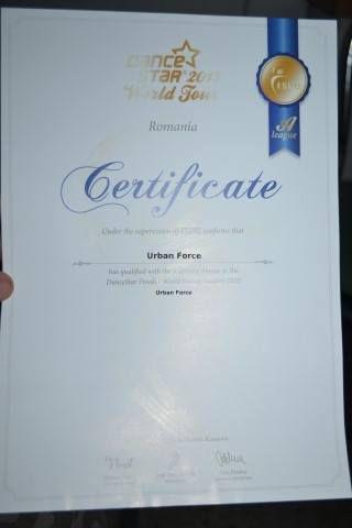 Cu acest loc, trupa Urban Force va reprezenta municipiul Dorohoi în Croația. Trupa are trei ani de când Cosmin Tataru a înființat-o ajungând în prezent în formula perfectă, 11 membri: șase fete si cinci băieți cu vârste cuprinse între 13 și 16 ani.