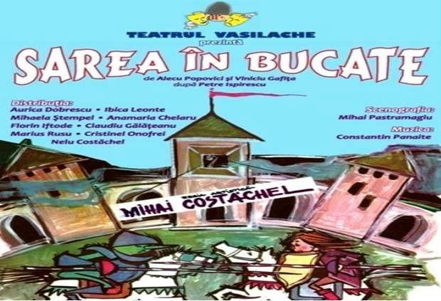 Teatrul „Vasilache” vă invită să vizionaţi spectacolul „Sarea în bucate”, după Petre Ispirescu. Regia este semnată de regretatul actor Mihai Costăchel, scenografia îi aparţine lui Mihai Pastramagiu, iar muzica este compusă de Constantin Panaite. Vor avea loc două spectacole, primul începând cu ora 10:00 și al doilea de la ora 11:00.