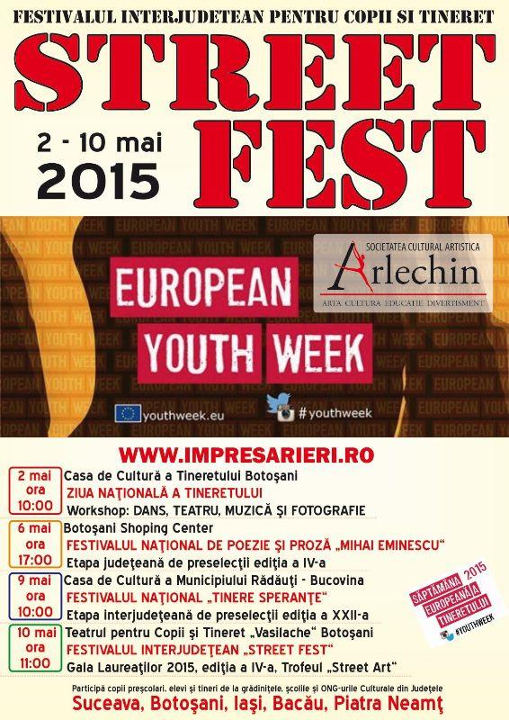 Cu acest prilej aceştia au dat startul şi la a patra ediţie a Festivalului Interjudetean pentru copii si tineret “STREET FEST” care se va desfăşura sub forma unei caravane culturale a tinerilor artişti din judeţele Botoşani, Suceava, Bacău, Iaşi şi Piatra Neamţ. In cadrul proiectului va fi sărbătorită “Săptămâna Europeană a Tineretului” prin organizarea la sediul asociaţiei şi în locaţiile partenerilor de proiect a mai multor workshop-uri tematice: dans, teatru, muzica, pantomima, modelling, fotografie, teatru de moda.