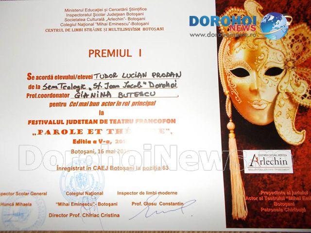 Elevi ai Seminarului Teologic Dorohoi au participat sâmbătă, 16 mai 2015, a avut loc cea de-a VI-a ediție a Festivalului judeţean de teatru francofon „Parole et Theatre”.