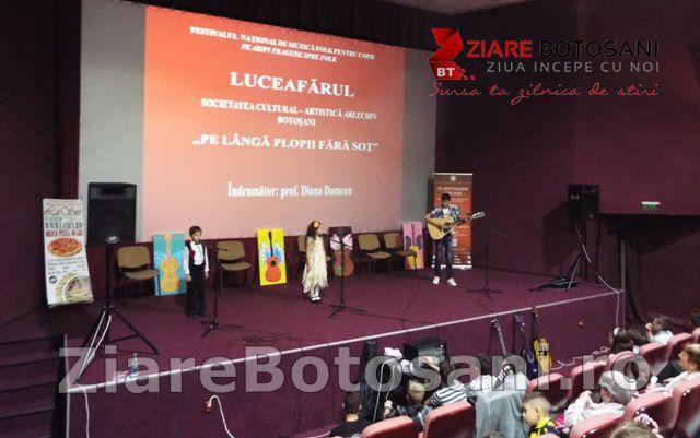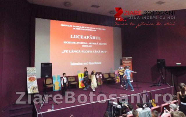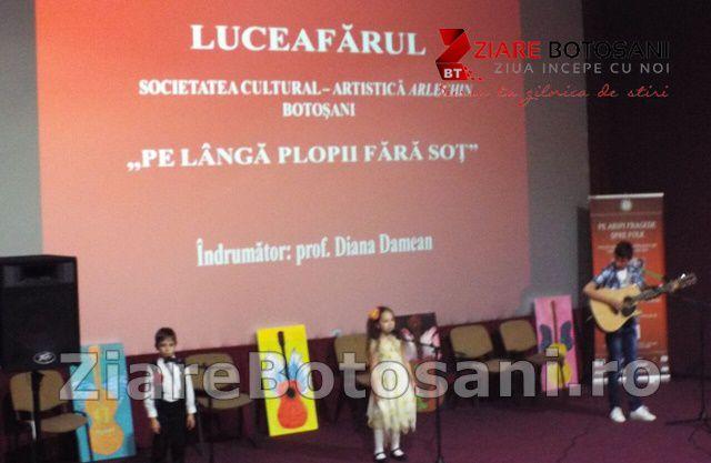 Grupul de muzică folk "Luceafărul" de la Asociaţia Culturală ARLECHIN Botoşani format din Iacob Ştefan, Daria şi Matei Dumitrache, profesor coordonator Diana Damean au câştigat premiu III la secţiunea de interpretare formaţii iar Stefan Iacob a obţinut şi o menţiune la secţiunea interpretare individual a Festivalului Naţional de Muzică Folk pentru Copii "Pe aripi fragede spre folk" , ediţia a III-a, organizat la Cluj - Napoca în zilele de 22- 23 mai 2015 de către Şcoala Gimnazială "Alexandru Vaida Voievod" Cluj - Napoca.