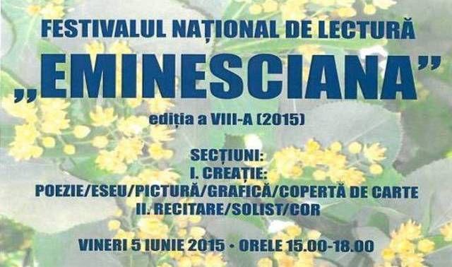 Festivalul Naţional de Lectură de altfel a şi fost denumit ”Eminesciana” şi se află la a ediţia a VIII a. Evenimentele culturale din cadrul festivalului vor avea loc la Secţia de Împrumut Carte pentru Copii între orele 15.00 şi 18.00.