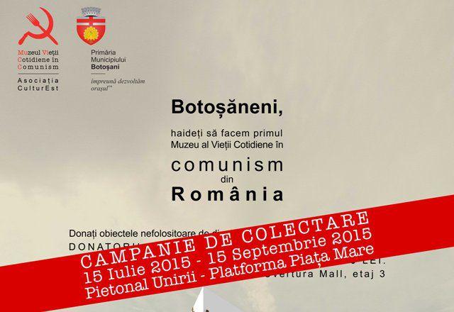 Primul proiect a început cu deschiderea unei campanii de colectare de obiecte muzeale în Botoșani, la care vor participa elevi voluntari de la licee importante din Botoșani (coordonator, Răzvan Pascal Constantin). Botoșănenii vor fi invitați, în perioada 15.07-15.09 a.c., să doneze obiecte pe care le-au folosit în perioada comunistă, în felul acesta, participând ca fondatori ai MuViCC, primul muzeu al comunismului din România.
