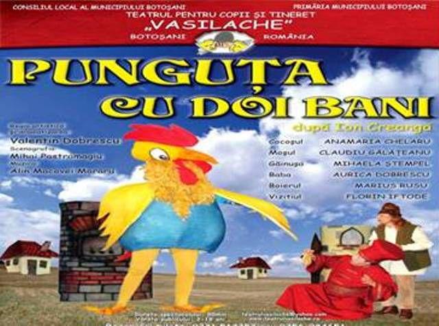 Copiii Brăilei și nu numai, vor avea bucuria de a viziona două reprezentații cu spectacolul „Punguța cu doi bani" în zilele de marți, 11 august, de la ora 18,30 în Parcul Monument și miercuri, 12 august, de la ora 19,00 în Grădina Publică.