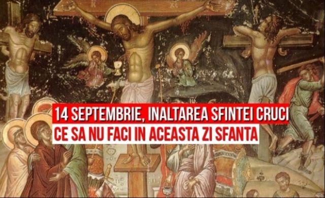 Sărbătoarea Înălţării Sfintei Cruci este singura cu post aspru şi rugăciune care apare la data de 14 septembrie atât în calendarul bizantin (ortodox şi greco-catolic), cât şi în cel latin.