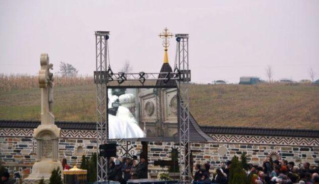 Slujba a fost transmisă pe două ecrane uriaşe, aceasta pentru că, dată fiind afluenţa extraordinară de lume, puţini sunt cei care au putut vedea efectiv oficierea.