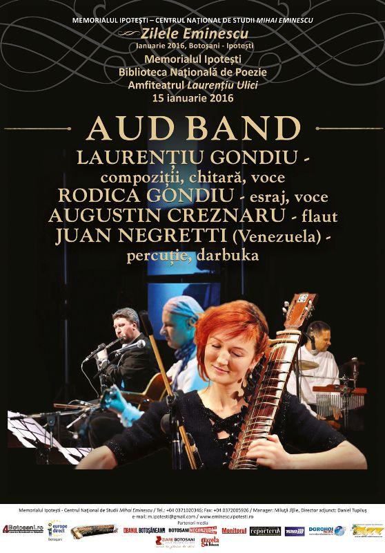 • Ora 13.10: Recital muzical susţinut de formaţia AUD Band condusă de Laurenţiu Gondiu.
