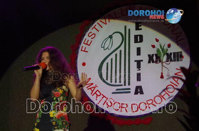 Gazdă a celor 33 de ediții ale Festivalului de Muzică Ușoară „Mărțișor Dorohoian”, municipiul Dorohoi s-a dovedit din nou susținător al muzicii ușoare de calitate. În seara de concurs a festivalului, ce a avut loc sâmbătă, 5 martie 2016, au evoluat toți cei 24 de participanți la cele două categorii de vârstă.
