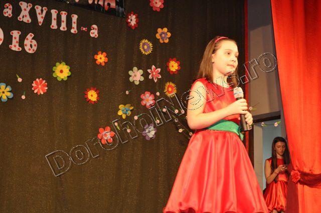Într-un decor primăvăratic, amenajat de prof. psihoped. Ana-Maria Ilaș și cadrele didactice de la Clubul Copiilor Dorohoi, cu sprijinul Florăriei „Belle Bouchet”, au evoluat grupurile „Voces” și „Junior”, „Noi Doi”, dar și alți tineri soliști talentați de la cercul „Muzică folk-muzică ușoară” coordonat de prof. Mihai Paul-Ciprian: Andreea Ilucă, Olivia Poraicu, Carina Borcea, Mădălina Neghină, Maria Airinei, Laura Macoviciuc, Denisa Agrăpinei, Andrei Cîşlariu, Eva Barabasa, Miruna-Ecaterina Mihai, Cristina Cucuruz, Delia Raileanu, Bianca Chiorescu, Sânziana Puiu, Antonio Tănasă, Alexia Grădinariu, Amina Damian.