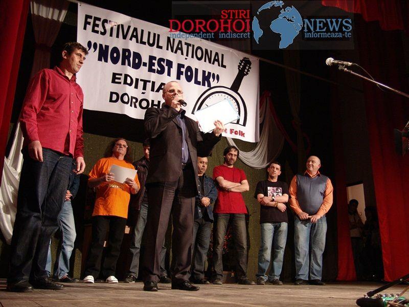 Festivalul “Nord-Est” Folk s-a încheiat ieri, 15 mai 2011, la Sala Teatrului din Dorohoi, cu decernarea premiilor în cadrul Galei Laureaţilor. Indiferent dacă au făcut parte din categoria 10-18 ani sau peste 18 ani, emoţiile concurenţilor au reflectat aceeaşi trăsătură: dorinţa de a le fi recunoscut atât talentul cât şi munca depusă. Înainte de a desemna câştigătorii, preşedintele juriului, Emil Răducanu a dorit să acorde diplome de excelenţă. Primarul Dorin Alexandrescu şi dir. Casa Muncipală de Cultură, Valuţa Murariu au primit acest act simbolic ca o recunoştinţă pentru contribuţia adusă la acest festival.