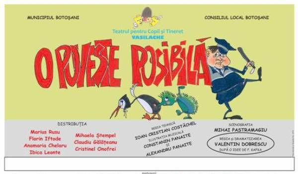 În această duminică, la Teatrul „Vasilache”, de la orele 11:00 şi 12:30 micii spectatori pot viziona spectacolul „O poveste posibilă”, de Valentin Dobrescu, după o idee de F. Kafka.