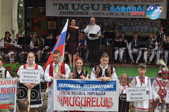 În drumul lor către scenă, în fața Primăriei Dorohoi, parada costumelor populare din cadrul Festivalului Internațional de Folclor „Mugurelul” a fost întâmpinată de oficialitățile prezente în cea de-a doua zi la eveniment: primarul orașului, ing. Dorin Alexandrescu, senator - Doina Federovici, deputat – Tamara Ciofu, Costică Macaleți – consilier județean, Dorin Birta – consilier județean.