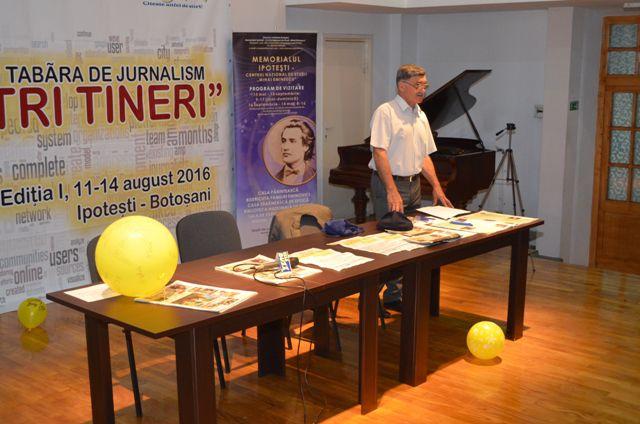 Tabara de jurnalism „Ai noștri tineri”, organizată de Asociația Buzzmedia și Memorialul Ipotești, cu sprijinul Consiliului Județean Botoșani, a debutat joi, 11 august, cu o conferință intitulată “Eminescu, gazetarul”, susținută de jurnalistul și directorul Teatrului Mihai Eminescu, Traian Apetrei. Datorită intervențiilor pline de conținut ale participanților asupra problematicii discutate – Eminescu studiat la școală astăzi, Eminescu, gazetarul, sistemul școlar de astăzi- evenimentul s-a încheiat cu o invitație într-una din emisiunile intitulate “Ora de cultură”, realizate de moderatorul conferinței, la Somax TV.