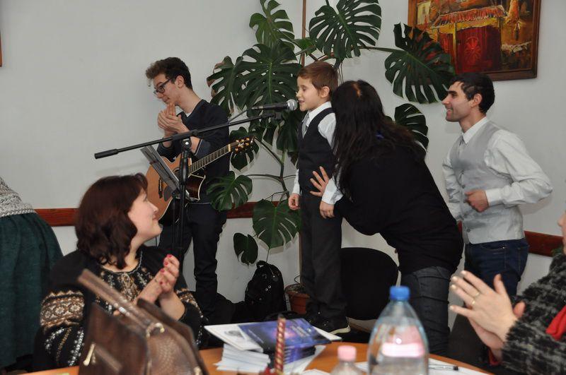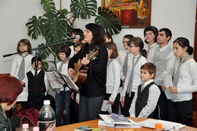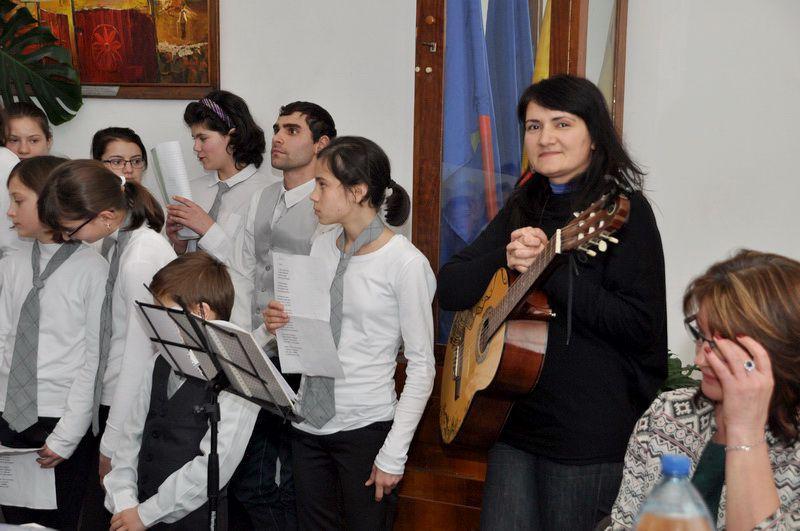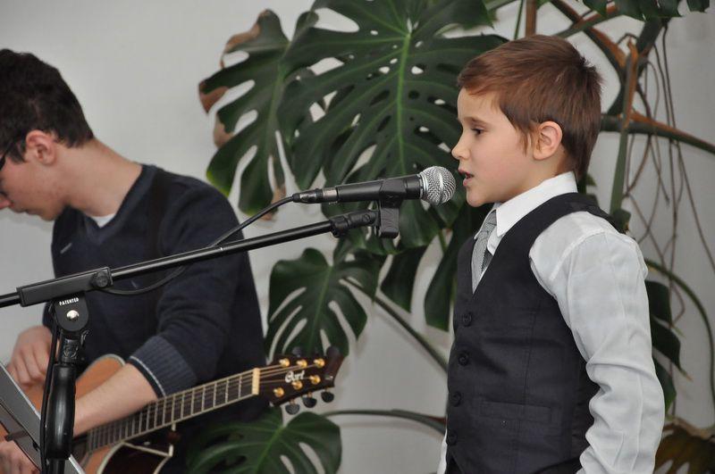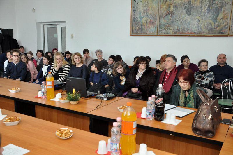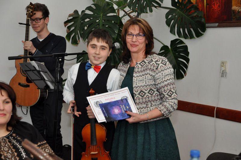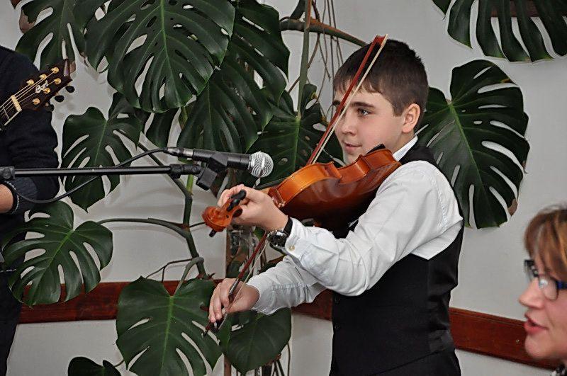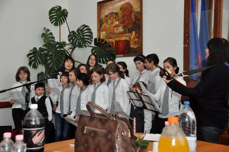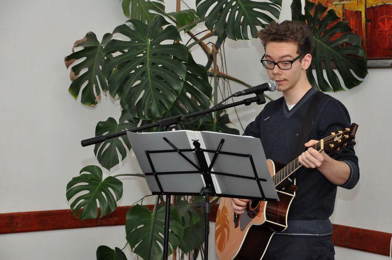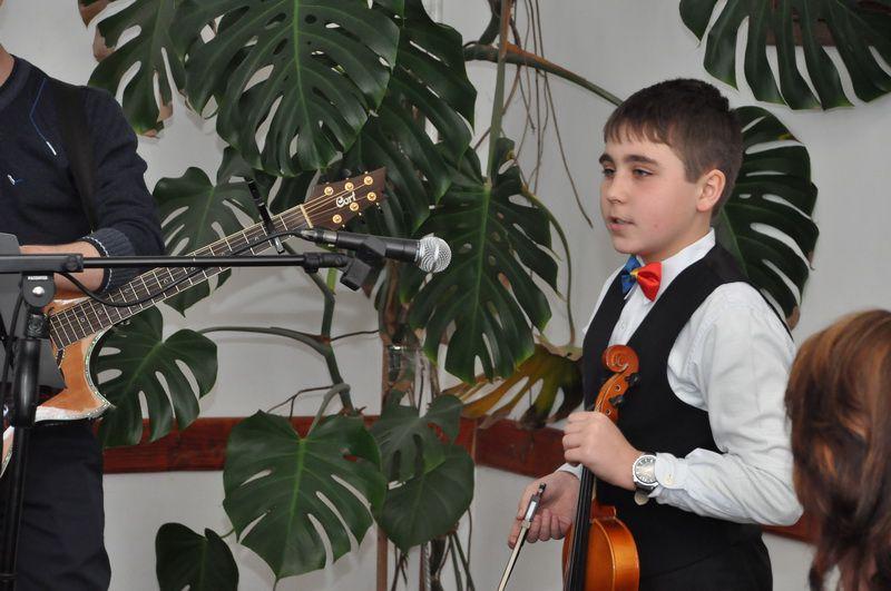 Sebastian Ionel, elev în clasa a-IX-a la Grupul Scolar Regina Maria, (matematică-informatică), a întreținut atmosfera de sărbătoare interpretând, cu măiestrie, piese folk pe versurile poetului Mihai Eminescu.