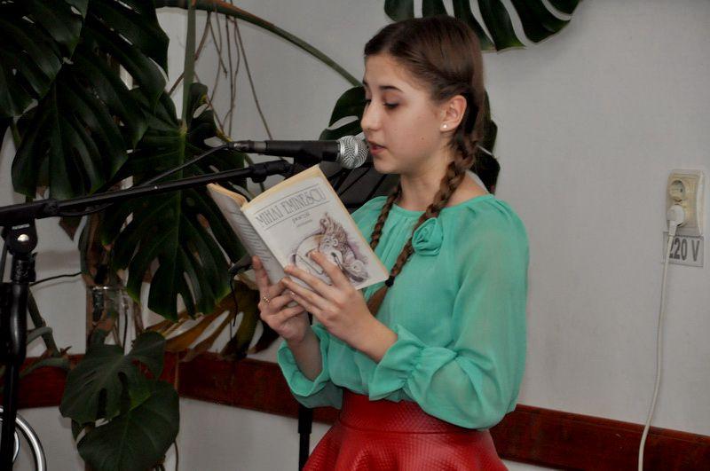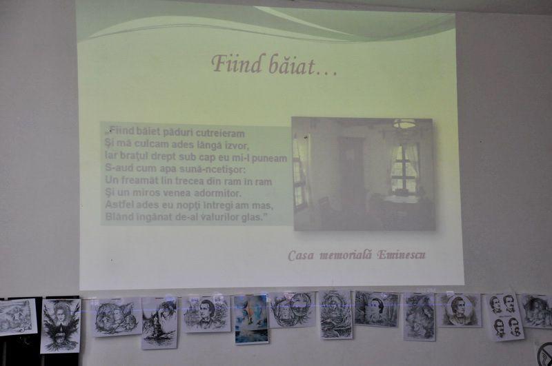 Atmosfera a fost încărcată de emoții și bucurie, de vibrație profundă când au „intrat în scenă” copii de la Grupul „Floare de colț” îndrumați de Ana-Camelia Andrieș. Doamna Raichel Victorița, profesor de limba romană, a avut o intervenție foarte bine documentată despre viața și activitatea literară a „Luceafărului” poeziei românești, Mihai Eminescu.