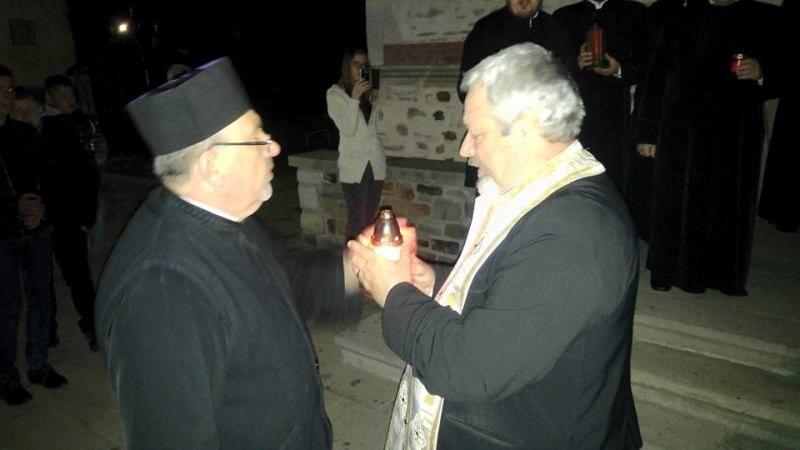 Lumina este adusă credincioşilor de Patriarhul Ierusalimului.