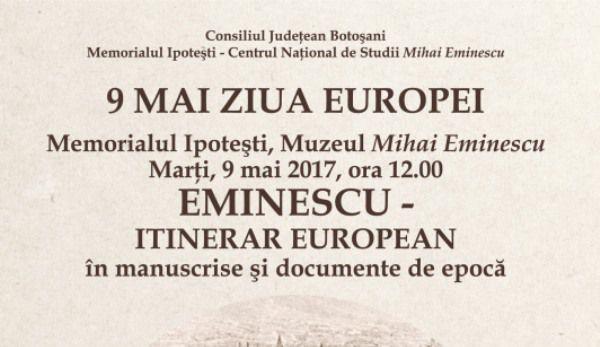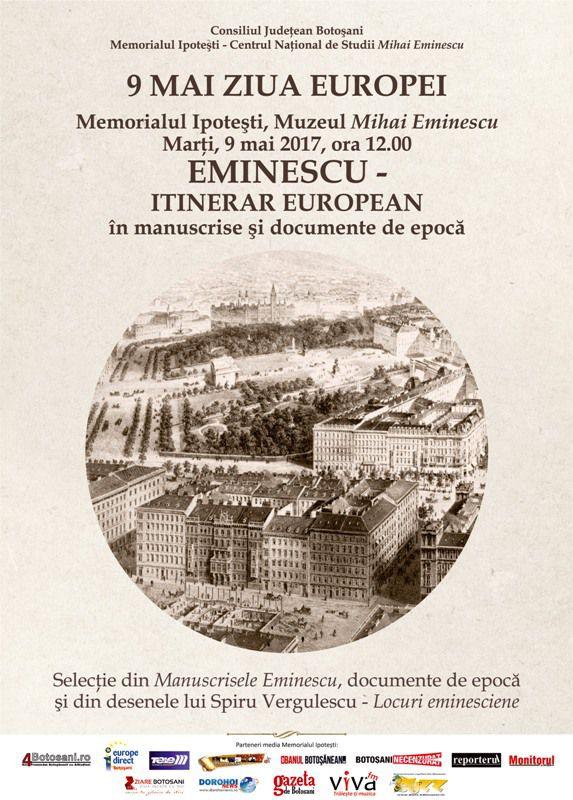 Memorialul Ipoteşti – Centrul Naţional de Studii Mihai Eminescu vă invită, în data de 9 mai 2017, ora 12.00, în Muzeul Tematic (Sala Portaluri), la vernisarea expoziţiei EMINESCU – ITINERAR EUROPEAN.