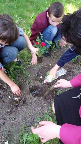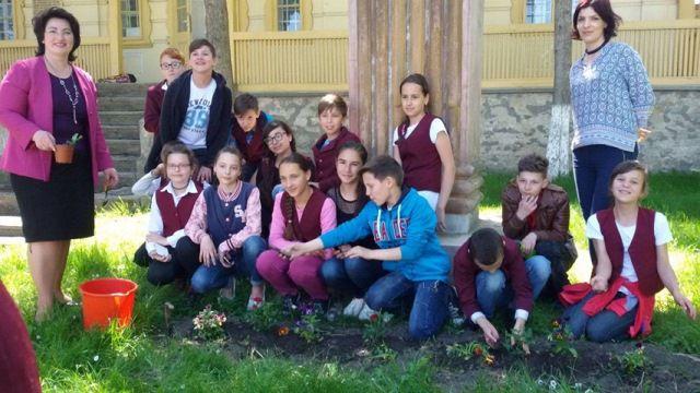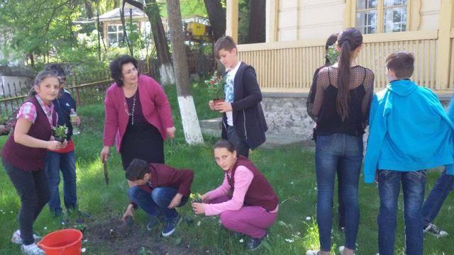 Elevii au venit cu flori pe care le-au plantat, îndrumați de domna profesoară Emanuela Botezatu. Activitatea s-a desfășurat în cadrul opționalului „Folclorul muzical zonal”.