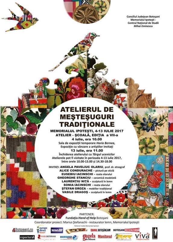 Memorialul Ipoteşti – Centrul Naţional de Studii Mihai Eminescu organizează în perioada 4 – 13 iulie 2017, ATELIERUL DE MEŞTEŞUGURI TRADIŢIONALE, ediţia a VII-a.