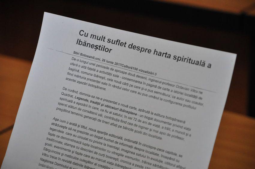 Duminică, 9 iulie 2017, începand cu ora 13:00, Casa de Cultură din Dorohoi a fost gazda lansării volumului: „Legende, tradiții și obiceiuri ibăneștene” scrisă de prof. Octavian Vitcu.
