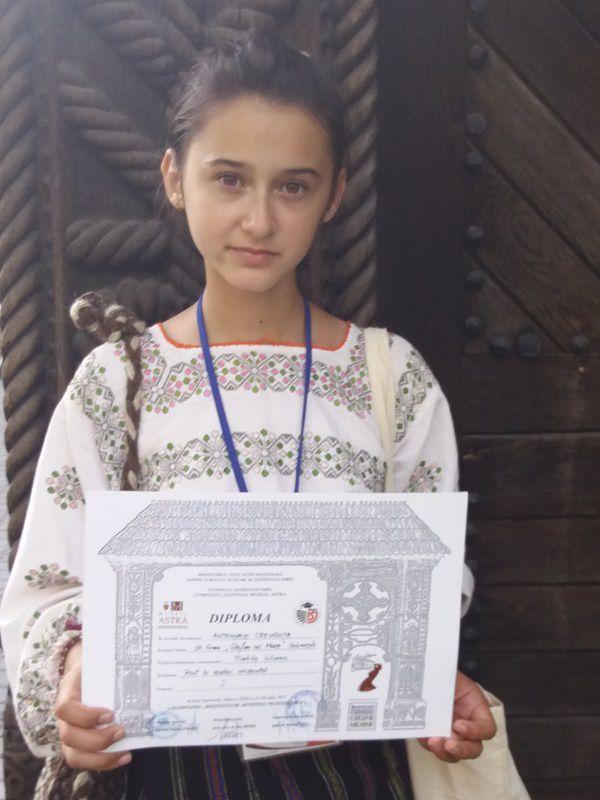 CRENGUȚA ANTONOAIE – PREMIUL I la Olimpiada „Meșteșuguri artistice tradiționale”, faza națională - SIBIU 2017