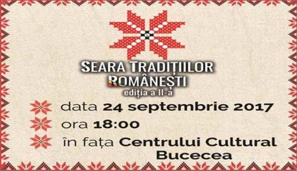 Spectacolul „Seara Tradițiilor Românești” va debuta în seara zilei de 24 septembrie 2017 cu momente artistice menite să reînvie sufletul românesc de altădată, începând cu ora 18:00, în fața Centrului Cultural Bucecea.