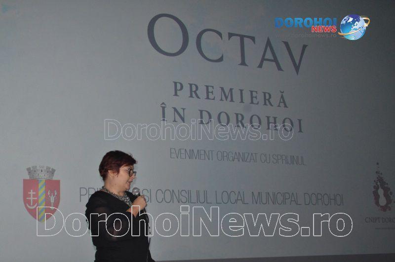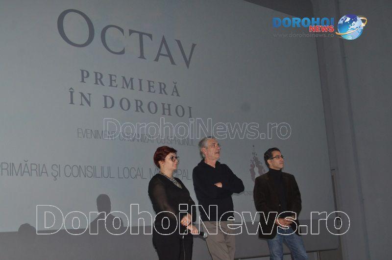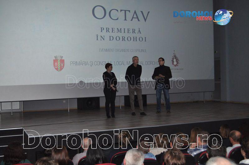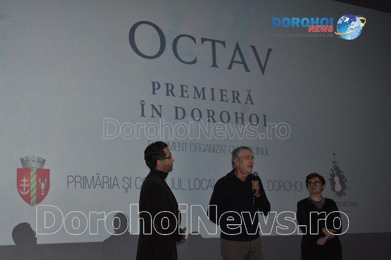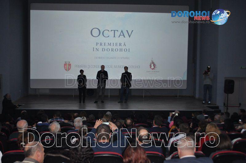 Filmul Octav a avut premiera la Dorohoi vineri, 17 noiembrie 2017, de la orele 18:00 și 20:30, la Cinema Melodia, în fața autorităților locale și județene și a sute de dorohoieni.