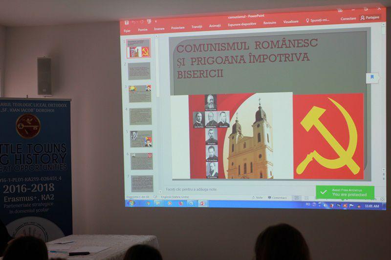 Simpozionul a debutat cu vizionarea unui material video,urmat de prezentatarea unei serii de referate de către d-na Dorohoncianu Anamaria, profesor de istorie, elevii Zăhărescu Dan-Dumitru şi Stan Andrei, coordonaţi de Pr. Prof. Chichioacă Petru-Georgel, de la Seminarul Dorohoi, d-na profesor Chirilă Elena, de la Şcoala „Mihail Kogălniceanu”, Dorohoi și elevele Burlacu Delia, Covaliu Diana, Porfireanu Ioana şi Guşilă Bianca, de la Colegiul Naţional „Grigore Ghica” Dorohoi, îndrumaţi de d-na profesor Constantin Xenia.
