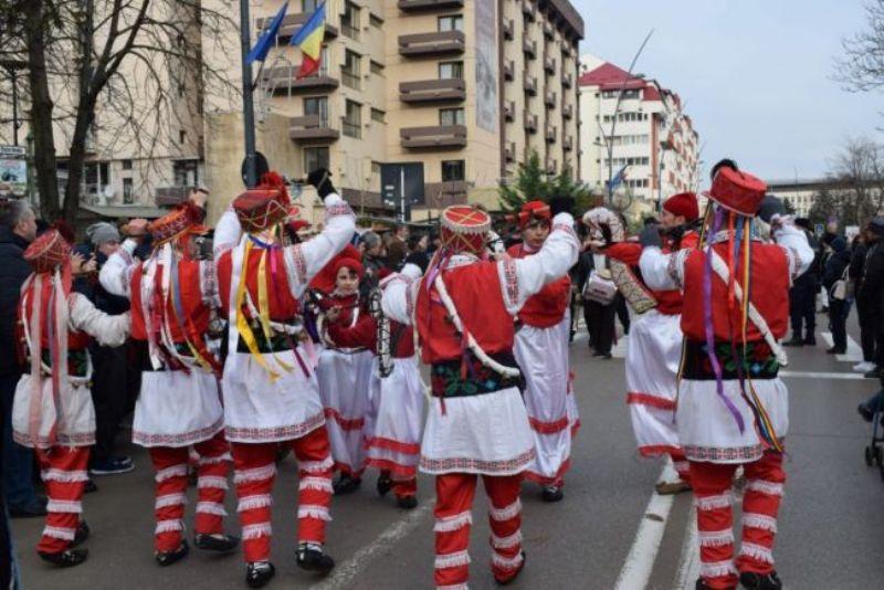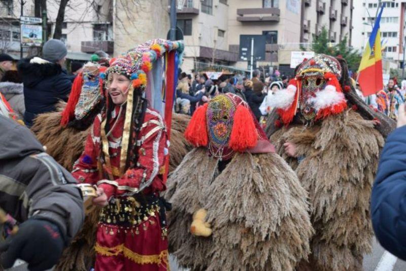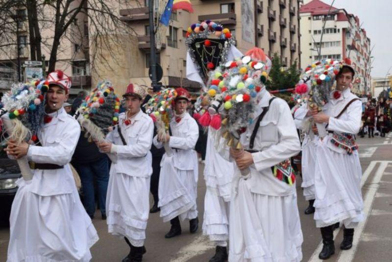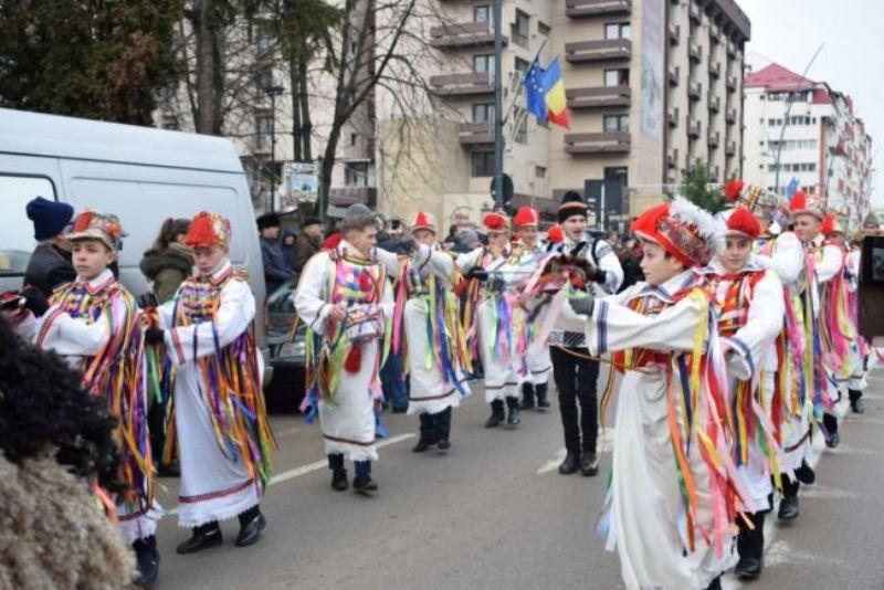 Sute de persoane s-au adunat să urmărească formaţiile de capre, căiuţi, urşi, colindători şi urători prezente la a 43 ediţie a Festivalului de datini şi obiceiuri de iarnă „Din străbuni, din oameni buni!”