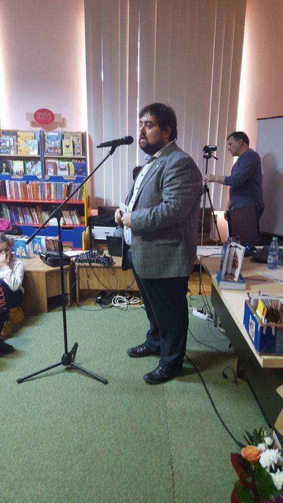 Foarte pe scurt, spațiul pus la dispoziție de Biblioteca Municipală s-a dovedit neîncăpător, așa încât o parte a publicului a ascultat de pe coridor.